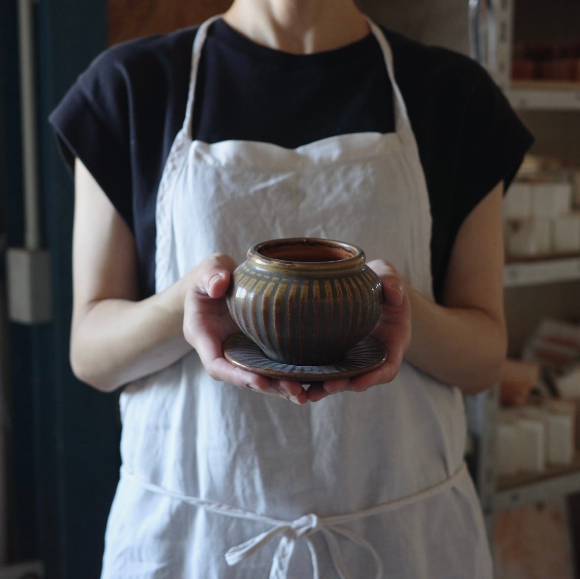 ろくろで一つひとつ丁寧に成形し、表面を削り落とすことで、釉薬が生み出す豊かな表情を引き出しています。